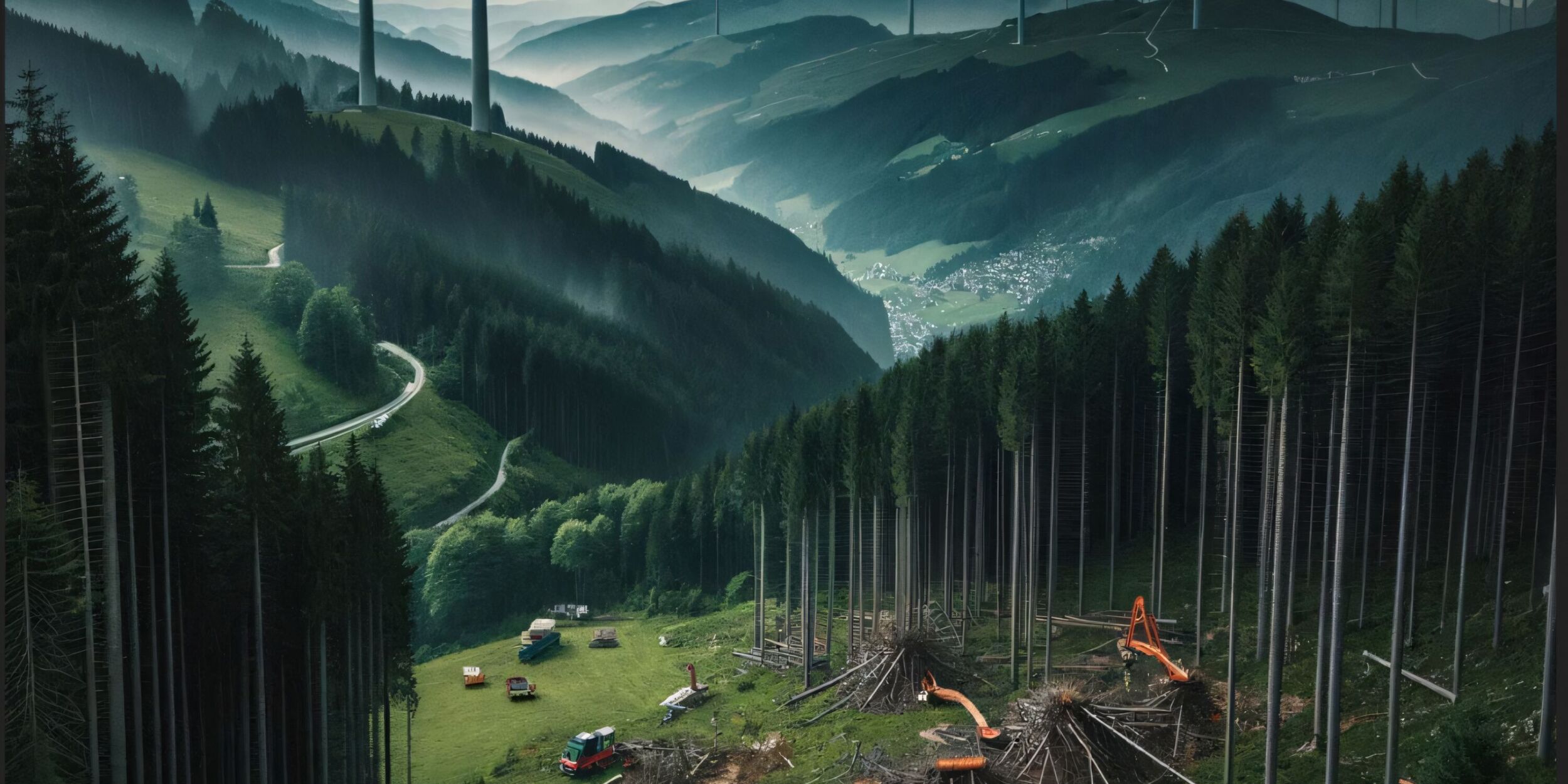 Für jede Windkraftanlage verschwinden tausende Quadratmeter Wald. Mit 242 Metern überragen diese Stahlmonster den Turm am Pyramidenkogel und verunstalten unsere Almen. Windräder kommen einer unwiderrufbaren Natur und Heimatzerstörung gleich.